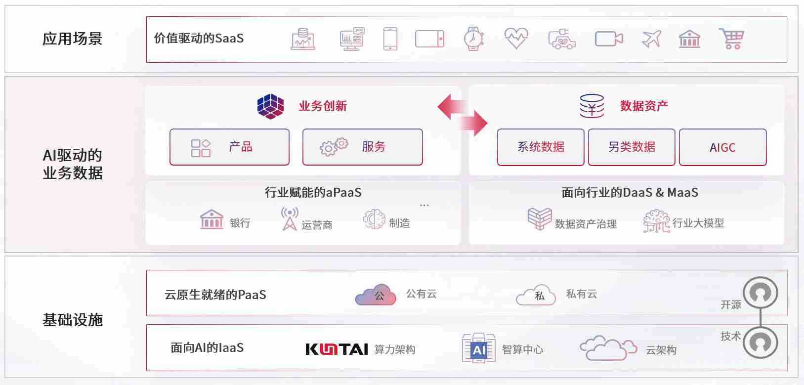 数字时代,,,围绕企业数字化转型的关键要素,,,,808钱包数码开创性的提出数云融合战略和技术体系框架,,,,着力在云原生、、数字原生、、AI原生和信创产业上架构产品和服务能力,,为处在不同数字化转型阶段的快消零售、、汽车、、、金融、、、、医疗、、、、政企、、、教育、、、运营商等行业客户提供泛在的敏捷IT能力和融合的数据驱动能力,,,构建跨界融合创新的数字业务场景和新业务模式,,助力企业级客户建立面向未来的核心能力和竞争优势,,,全面推动社会的数字化、、、、智能化转型升级。。。。