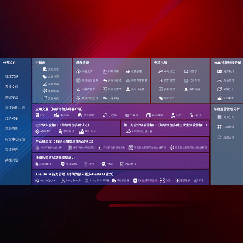 医疗器械产品上市前,,,,要熟悉严格与繁复评审标准,,整理分析监管机构指导文件中的海量信息。。。。企业急需一个智能化解决方案,,,提升知识管理效率,,,提高评审通过率,,,以提升其市场竞争力。。。